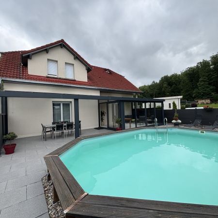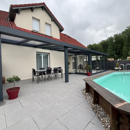 Réalisation d'une Véranda avec Pergola accolée Ville : FRIESEN Année : Description : Véranda + Pergola accolée ppppp