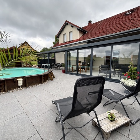 Réalisation d'une Véranda avec Pergola accolée Ville : FRIESEN Année : Description : Véranda + Pergola accolée ppppp